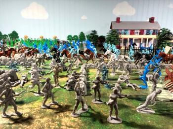 Hello, everyone. Is winter almost over yet? We just had a blizzard on Monday, then the sun came out, the temperature hit 40 degrees, and now we have mushy snow! I worked on Monday for half a day but never opened the doors, as Wakefield was more or less shut down for the day. Tuesday was a busy day this week, with two days' worth of shipments arriving all at once. These included King and Country, War Park, W. Britains, Universal (CCGs and games), Battlefront, AK Interactive, and Hobbytyme (models and paints). Hopefully, I will see some sun in California! Above is an actual diorama of Wakefield! - JUST KIDDING! - We have hit 60 inches of snow this year! The above is a 28mm Battle of the Bulge Game!