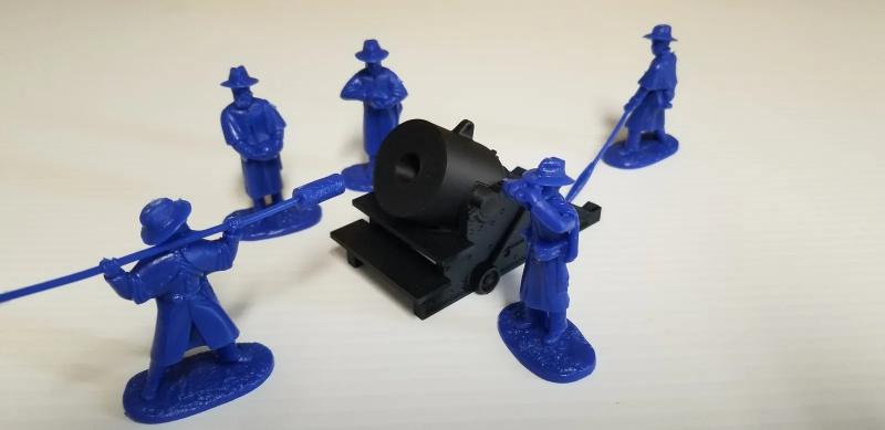 13-inch Mortar with Union crew of five with Overcoats, American Civil War, 1861-1865--mortar and five figures (dark blue plastic)