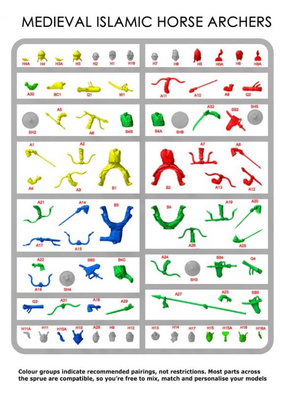 This plastic set depicts Seljuk and Turkoman horse archers, featuring a wide variety of head options that reflect the diverse warriors drawn from across the Islamic world. Turkoman tribes fought in vast numbers as auxiliaries within Seljuk and other Islamic forces, famed for their mastery of mounted archery and fluid battlefield tactics.