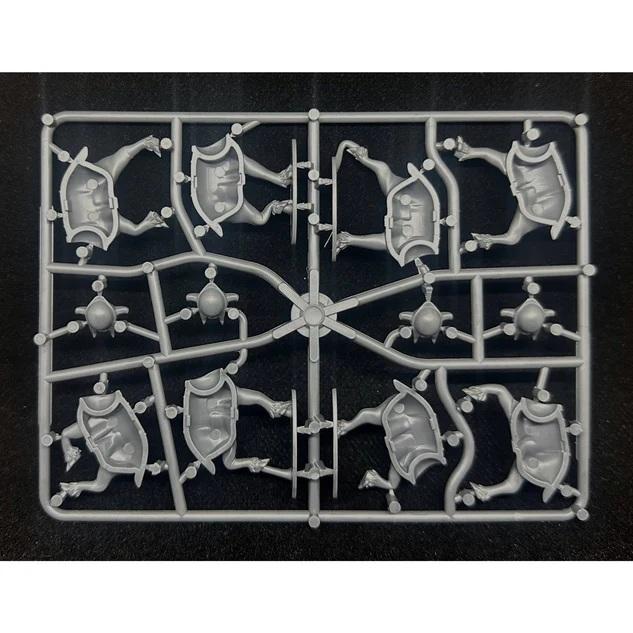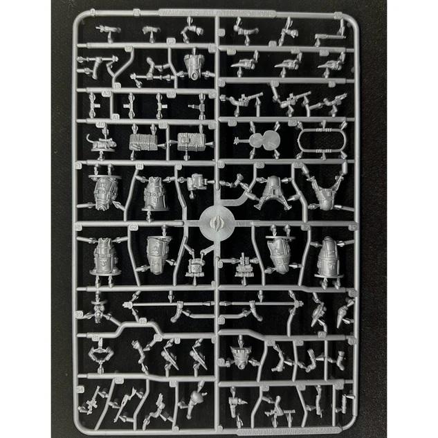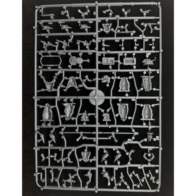 This hard-plastic box set includes enough parts to build a full Fidwog Command team, including officers, standard bearers, a signal Quar, and two pairs of two mounted rhyflers on Cadiers, along with two pack Cadiers. 12 dual-use 25mm bases and 6 25mm x 50mm pill bases are included.