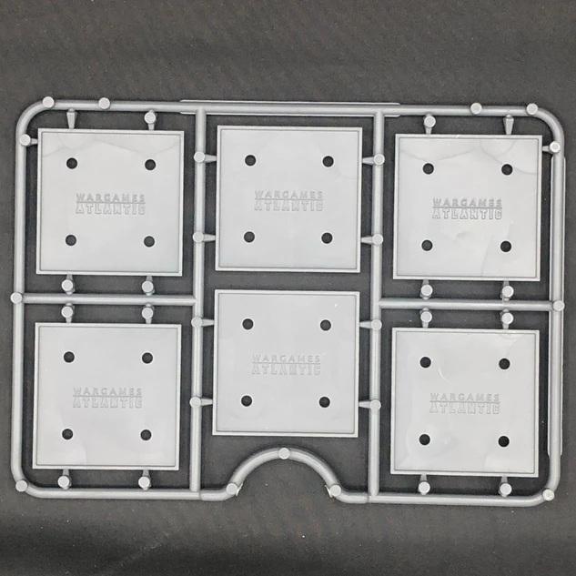 These are a new kind of base that has been designed to work with figures that have either an integral “puddle” base or flat feet. One side has a 1mm indented recess so that figures with puddle bases will have their feet flush with the edge and eliminate that “standing on a hill” look. The other side is flat for figures which will have their feet glued directly to the base. These bases have a low 2mm profile to blend well with the tabletop, and there are also four 3mm x 1mm holes to add magnets for secure storage or for use with a movement tray.