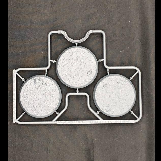 50mm Textured Bases (3mm Bevel)--12 textured hard plastic 50mm bases with a 3mm height and bevel edge