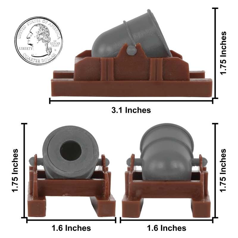 - Size: Cannon 3.5x2x1.6 inch, Mortar 3.1x1.6x1.75 inch tall