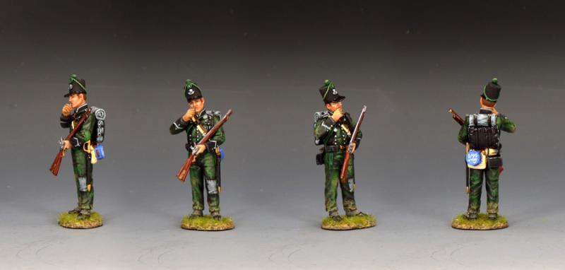 The focus of this new collection are soldiers of the 95th Rifles, at that time a relatively new regiment of the British Army. As one senior officer noted, “All officers and men of this new corps wore dark green uniforms with their belts and trim in black. They were also expert marksmen and skilled in fieldcraft and rapid movement on the battlefield!”