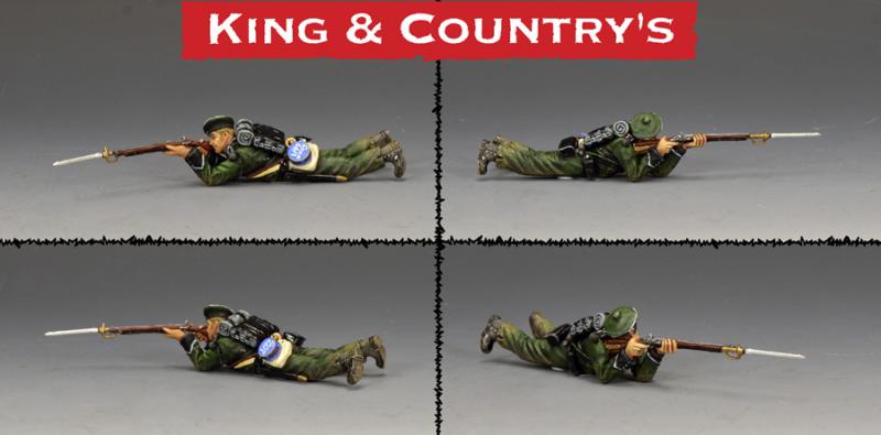95th Rifleman Lying Prone--single prone Napoleonic-era British figure in forage cap