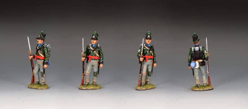 The focus of this new collection are soldiers of the 95th Rifles, at that time a relatively new regiment of the British Army. As one senior officer noted, “All officers and men of this new corps wore dark green uniforms with their belts and trim in black. They were also expert marksmen and skilled in fieldcraft and rapid movement on the battlefield!”