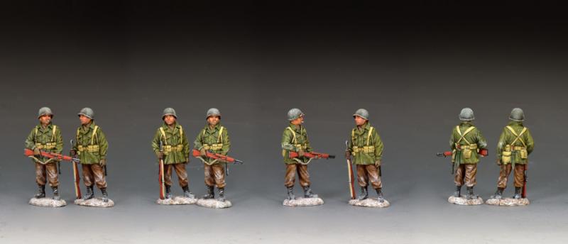 Another two G.I.s wearing their M-1943 Field Jackets with M1 Garand rifles in hand. These particular soldiers might be on guard duty or perhaps just waiting for new 'orders' to be issued.