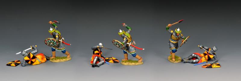 As the stricken Crusader Priest attempts to defend himself, the attacking Saracen warrior moves in for the kill.