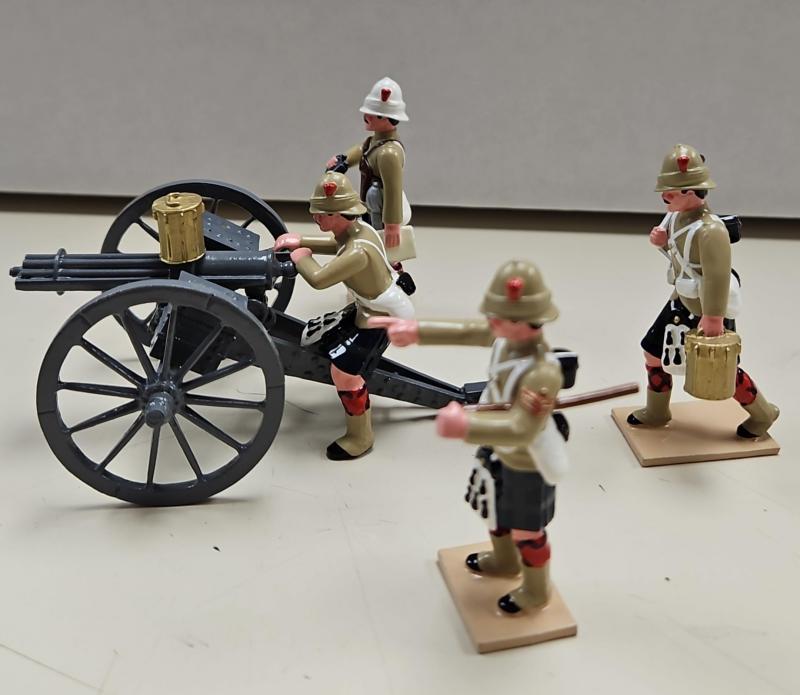 Black Watch Gatling Gun--Gatling Gun and four man crew, Black Watch (Khaki Drill Tunics), Highland Regiments, 1882-1890--gun and four figures--RETIRED--LAST ONE!!