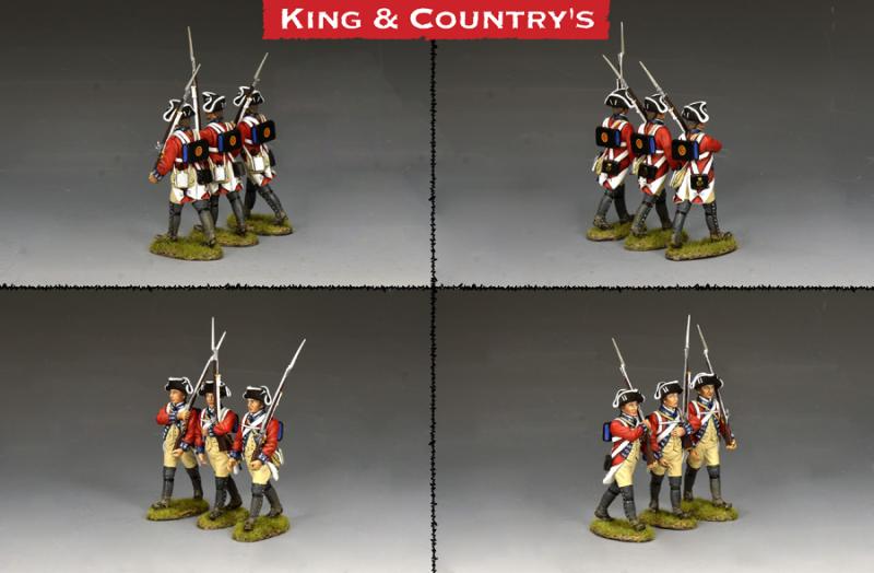 British 4th Regiment of Foot Marching Redcoats--three marching AWI-era figures