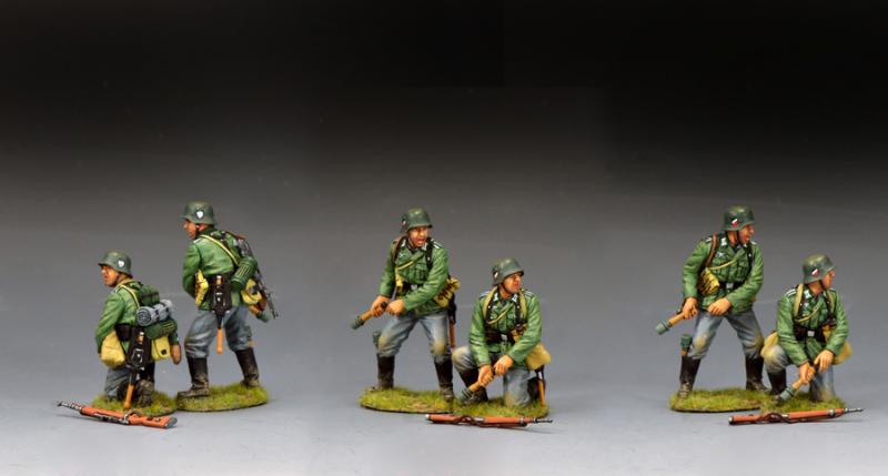 All of these new figures are wearing the uniforms, helmets, fighting equipment, and weapons that were modernized and introduced in the years from 1935 onwards. with some modifications between then and 1942/43.