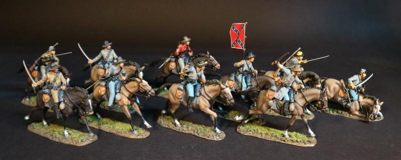 Confederate Cavalry Bugler (grey uniform, tan running horse), Cavalry Division, The Army of Northern Virginia, The Battle of Brandy Station, June 9th, 1863, The American Civil War, 1861-1865--single mounted figure with pistol raised