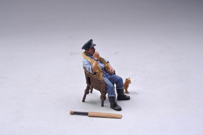 Flight Lieutenant David Lord, VC relaxing in a wicker chair with cricket bat and cat accessories--single seated figure--RETIRED--LAST ONE!!