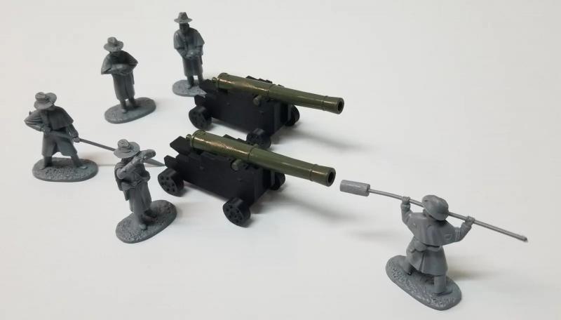 "Fortress Artillery", Confederate Two 24-pounder Gun with Five-Man Crew in Overcoats, American Civil War, 1861-1865--two cannon and five figures (Grey plastic)