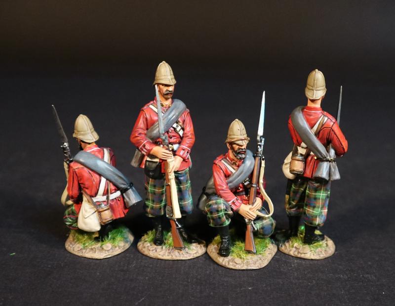 Four Highlanders (2 standing, gunbutt on ground; 2 kneeling, gunbutt on ground), 91st Regiment (Princess Louise's Argyll Shire Highlanders), Eschowe Relief Column, Battle of Gingindhlovu, 2nd April 1879--four figures