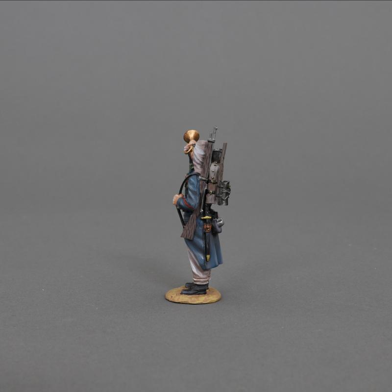 French Legionnaire Bugler Standing Blowing Horn--single figure with backpack and slung rifle