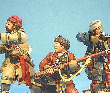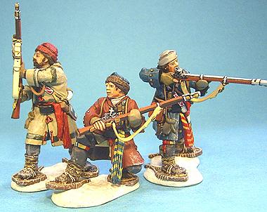 French Militia Set 1, Battle on Snowshoes, 1758--three figures--RETIRED--LAST ONE!!