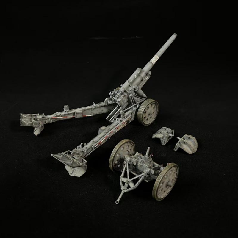 The product includes a howitzer, four soldiers, and a limber. The barrel is made of metal material, while the body and wheels are made of resin material. The barrel can pitch and the wheels can push. Artillery can transform into two states: firing and transport.