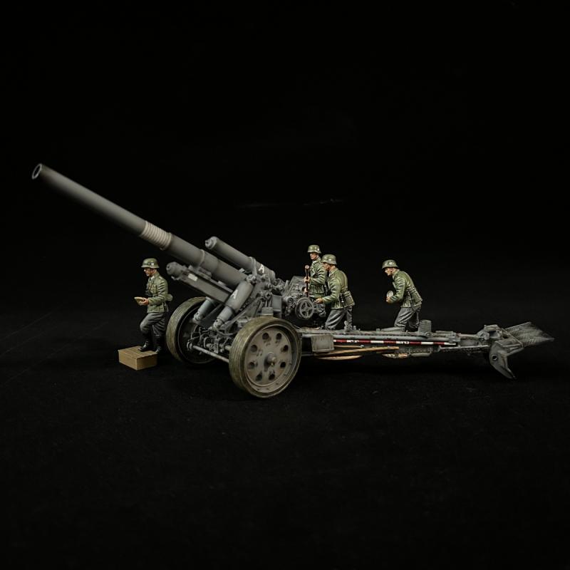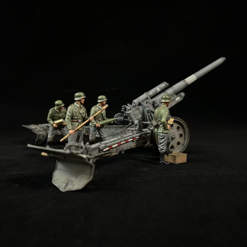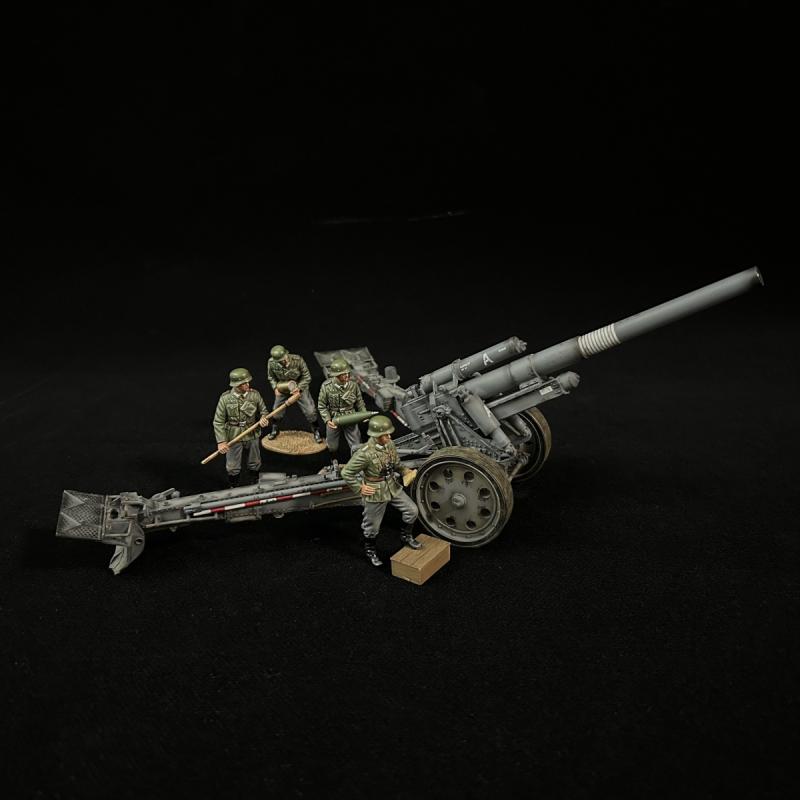 German Grey sFH18 150mm Howitzer with Limber and Crew.