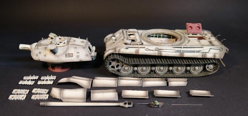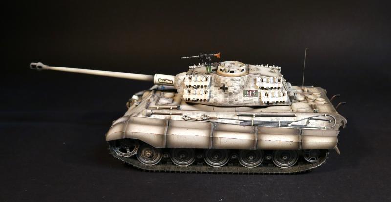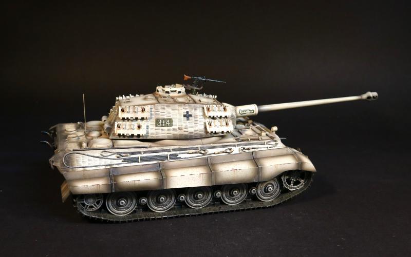 JJ Designs presents King Tiger #314 “Anneliese”, faithfully recreating one of s.Pz.Abt. 503’s formidable King Tiger heavy panzers photographed during this turbulent period. King Tiger #314 features extra track links on its turret sides as well as between its exhaust pipes, upgrades implemented by s.Pz.Abt. 503. Additionally, "Anneliese" features a solid winter whitewash paint scheme, with patches left unpainted for the turret numbers and on the cannon mantlet sides where the name "Anneliese" (most likely the name of a crew member's wife or girlfriend) was proudly written in white letters.