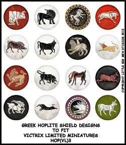 Greek Hoplite Shield Designs 3--28mm Greek Hoplite shield designs to fit Victrix Ltd. miniatures