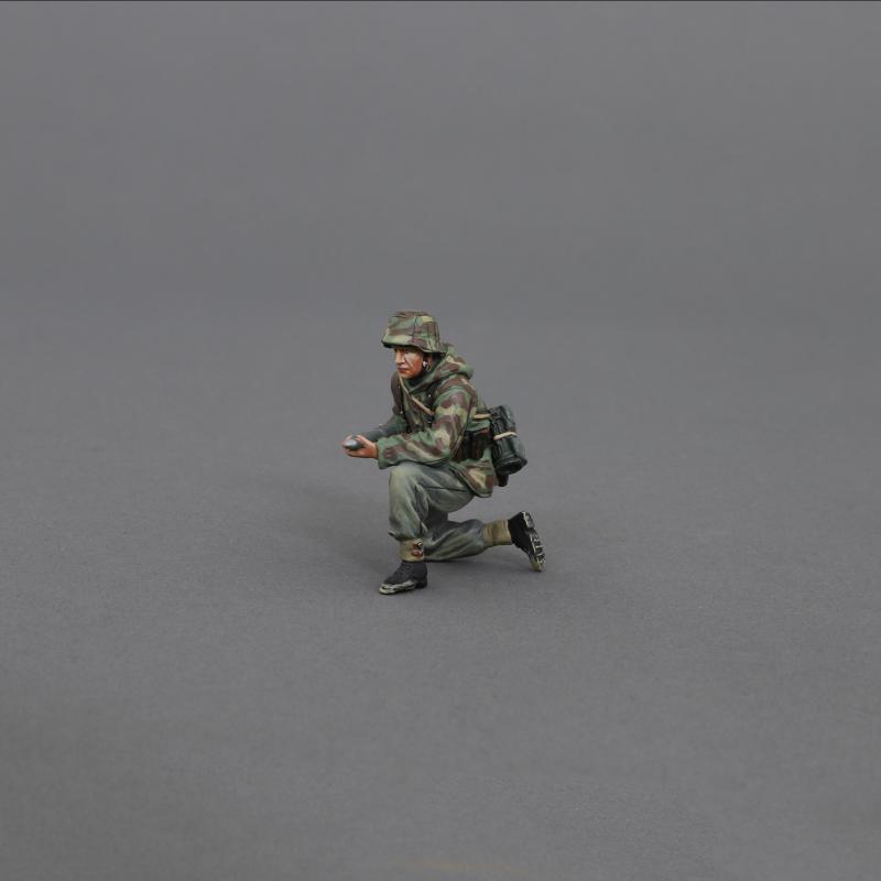 Here is a kneeling SS artillery crewman wearing an Italian style camo jacket with shell. No base, so he can easily sit on one of self propelled guns if required.