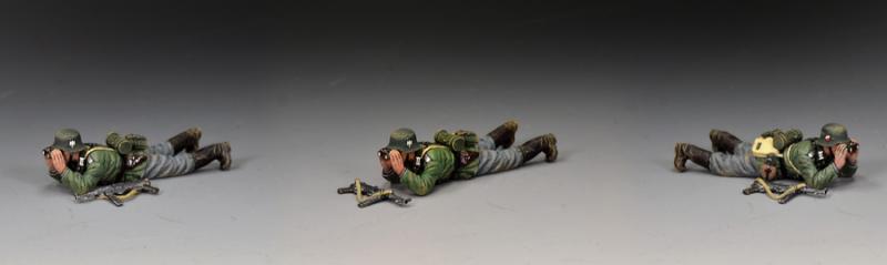 Stretched out on the ground, this NCO observes the enemy through his binos. Placed in front of him is another 'classic': his MP40 'Schmeisser Machine Pistol.