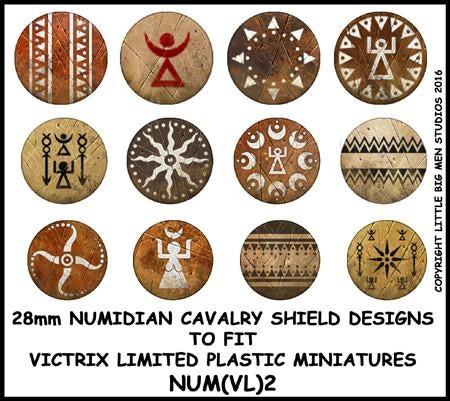 12 Numidian Cavalry shield transfers to fit Victrix limited range of ancient Numidian cavalry.