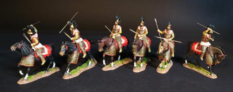 Persian Heavy Cavalry (yellow tunic, red horse blanket), The Achaemenid Persian Empire, Armies and Enemies of Ancient Greece and Macedonia--single mounted figure (2 javelins in lap, 1 in right hand at rest)