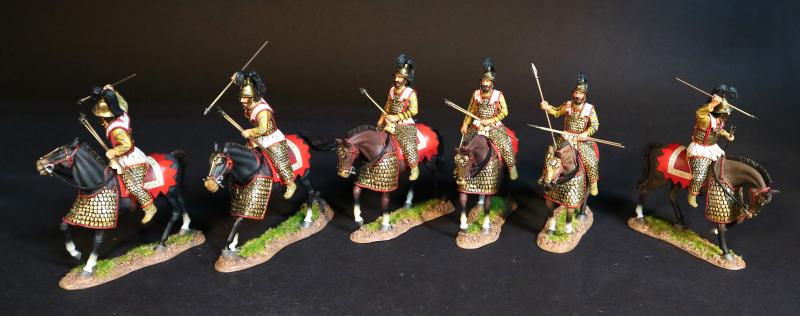 Persian Heavy Cavalry (yellow tunic, red horse blanket), The Achaemenid Persian Empire, Armies and Enemies of Ancient Greece and Macedonia--single mounted figure (two javelins in left across lap, one in right ready to throw to the right)
