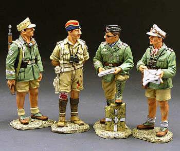 Questioning the Prisoner - Two Afrika Korps officers interrogate a captured British Officer. Guarding the prisoner is an AK Panzer Grenadier.