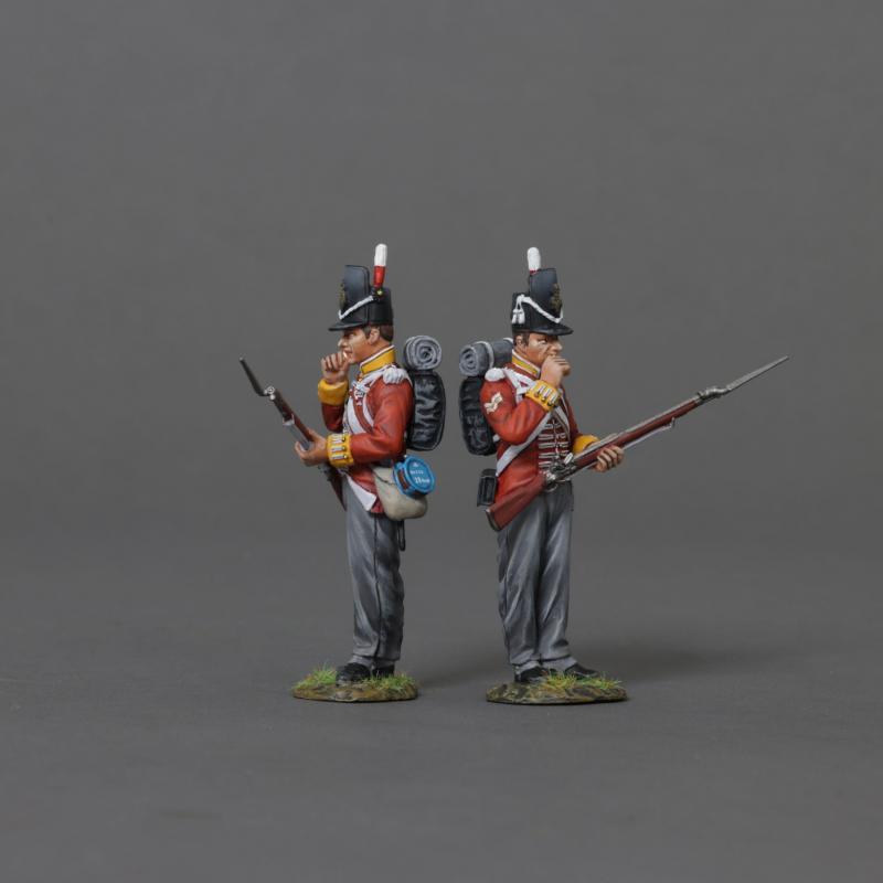 "Reload #2"--Private and Corporal biting the cartridge (bullet), 28th (North Gloucestershire) Regiment of Foot, Napoleonic Wars, 28th (North Gloucestershire) Regiment of Foot, Napoleonic Wars--two standing figures