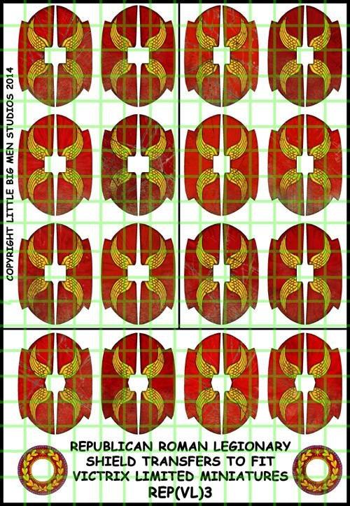 Republican Roman Shield Designs 3--28mm Republican Roman Legionary shield transfers to fit Victrix Ltd. miniatures