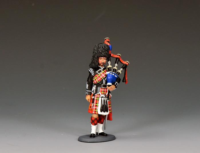 Our K&C figure holds his bagpipes under his left arm as he listens to his pipers play.