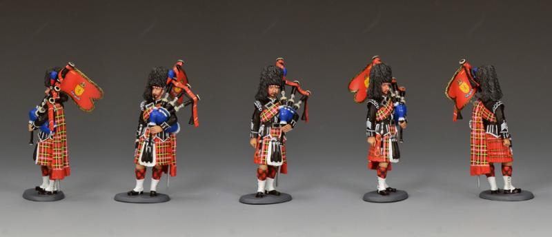 Here are the two latest recruits to King & Country’s ‘CEREMONIAL’ Range of ‘Soldiers on Parade’. These two figures are the first of five that together and in multiples can form the Pipes & Drums of the 1st. Battalion, Scots Guards.