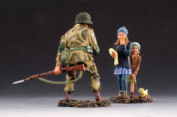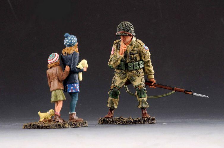 Shush--82nd Airborne trooper and a pair of young French girls--RETIRED--LAST ONE!!