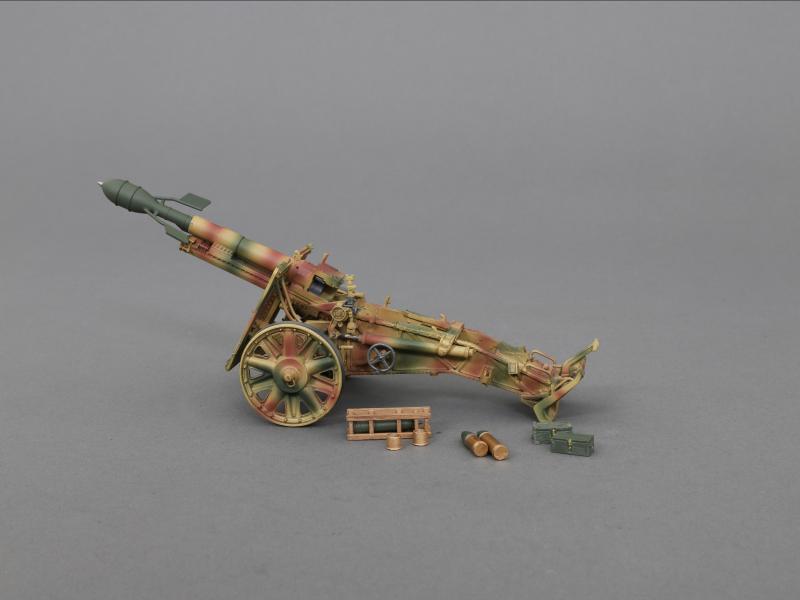 The Sig.33 heavy infantry gun was the standard German infantry gun used during WWII. It was the largest weapon ever classified as an infantry gun by any nation. Initially, its weight made it difficult to manoeuvre in the field and the gun was adapted with lighter alloys, and late,r it was mounted on tracked/wheeled vehicles for increased mobility.