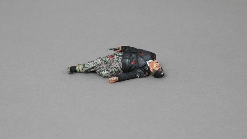 Located in the hull, this crewman operated the tank's radio for external communications and often manned a hull-mounted machine gun. Have grabbed his luger and escaped the crippled armoured vehicle he was cut down. Wearing a black jacket and camo trousers, still gripping his luger, he has paid the price.