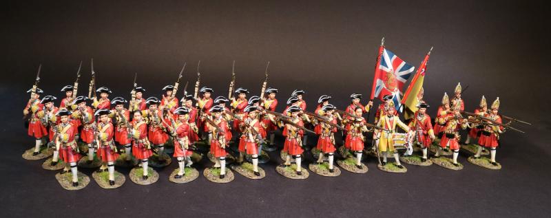 The British army at this time consisted of 69 red coated regular infantry regiments. Each was organized as a single battalion, which comprised of ten companies, which included one company of grenadiers. Each company had an ideal strength of 70 rank and file, so a battalion had 700 men.