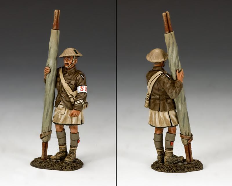 This “Jock” stands holding his folded stretcher...perfect for any “behind the lines” display.