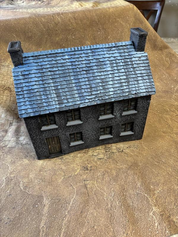 Stone House with Blue Slate Roof--painted grayish stone--11.5 in. x 8.0 in. x 10.5 in.--ONE IN STOCK!