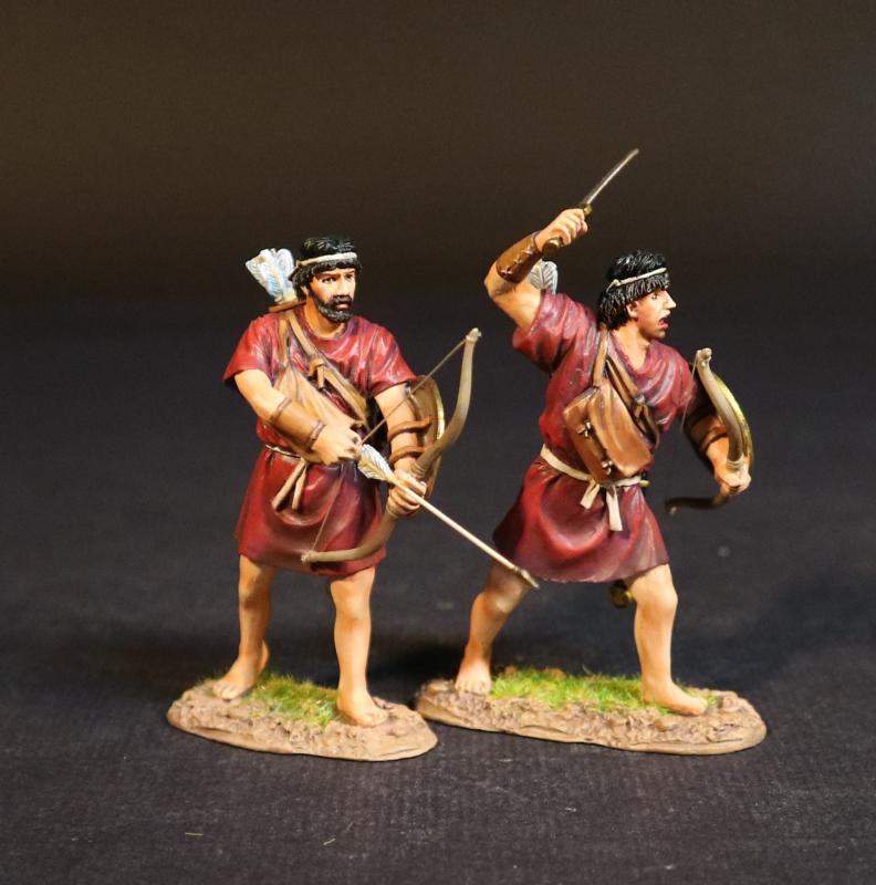 Two Cretan Archers (red tunics), Armies and Enemies of Ancient Greece and Macedonia--two figures with bows and bucklers (1 drawing bow; 1 with raised sword & lowered bow)