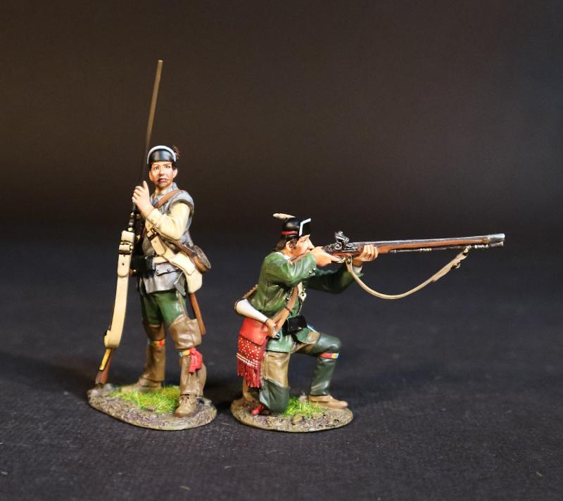 Two Rangers (standing ramming; kneeling firing), Roger's Rangers, The Raid on St. Francis, 1759, The French and Indian War, 1754-1763--two figures
