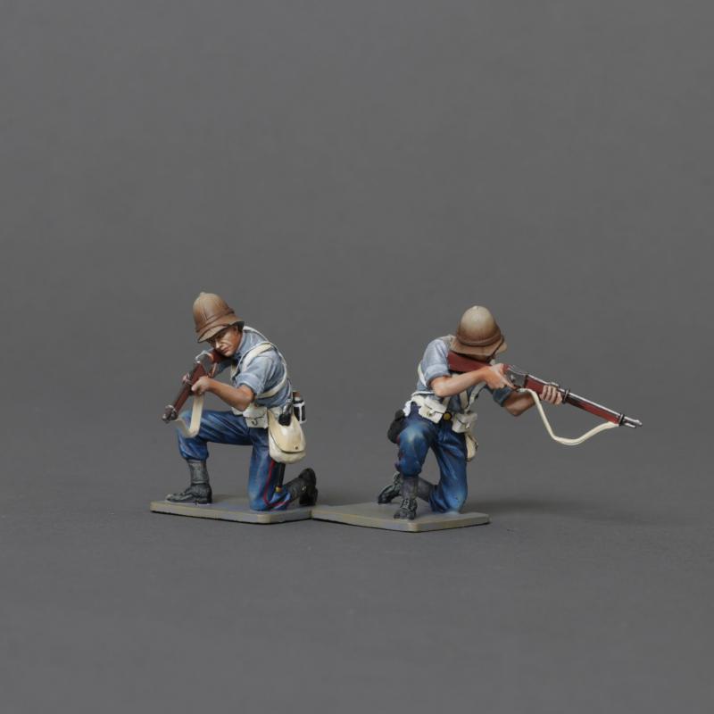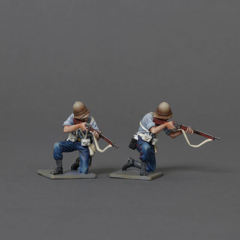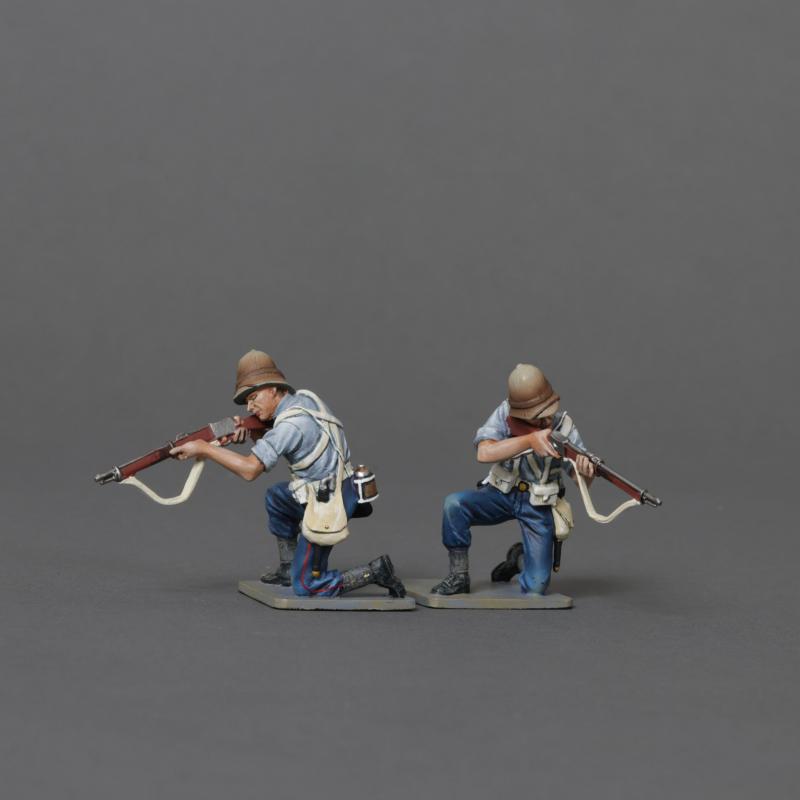 Two Riflemen in Shirt Sleeve kneeling firing down, 24th Regiment of Foot, Anglo-Zulu Wars--two kneeling figures in shirt-sleeve order