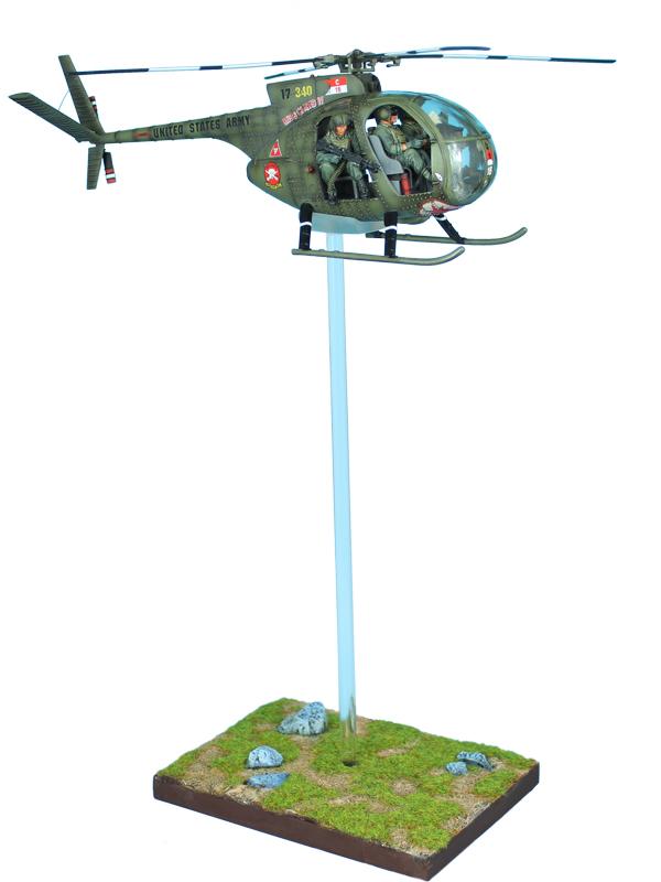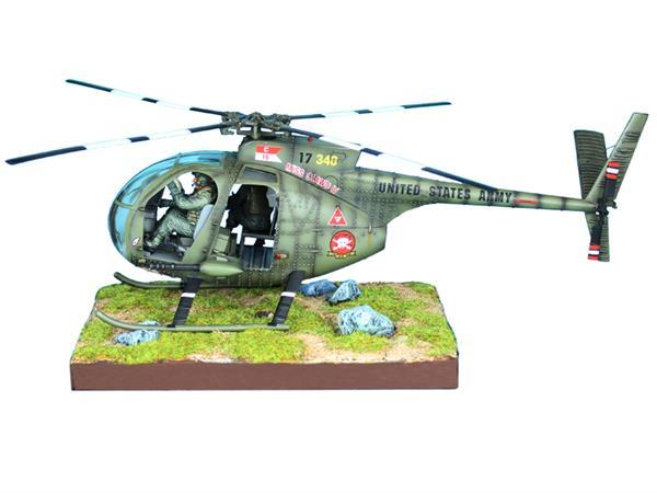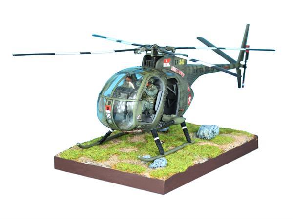 U.S. OH-6A Cayuse (Loach) Helicopter with three Figures & Terrain Stand