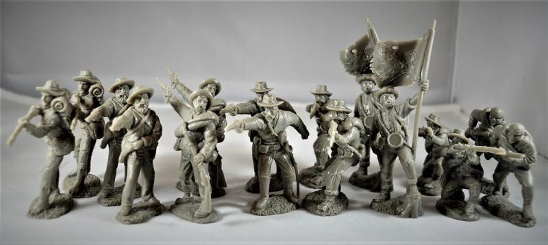 ACW Confederate Firing Line--16 figures in 8 poses, GRAY