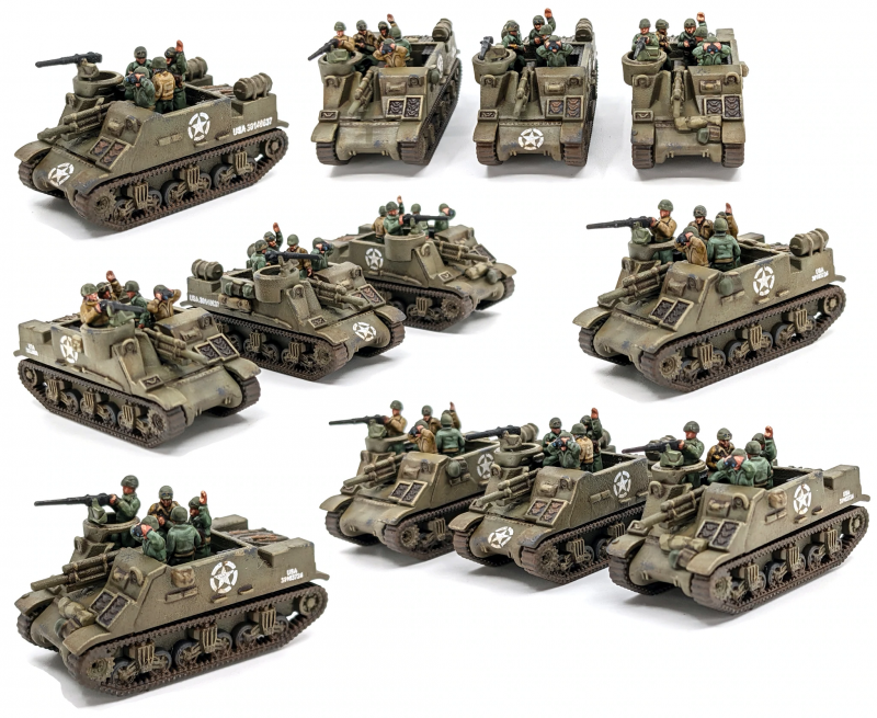 M7 Priest--six 1:144 scale (unpainted plastic kit)