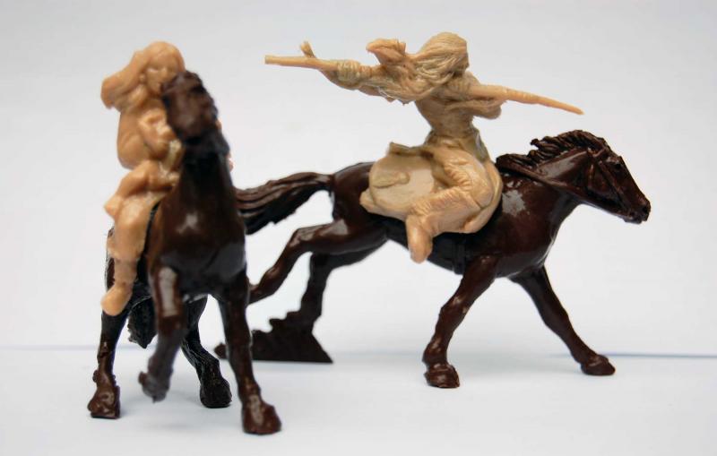 Mounted Comanche with Spear and Mounted Woman with Babies--four pieces -- FIVE IN STOCK!