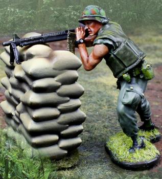 Ground Pounder MG Sandbags--single firing figure & separate sandbag wall--ONE IN STOCK.