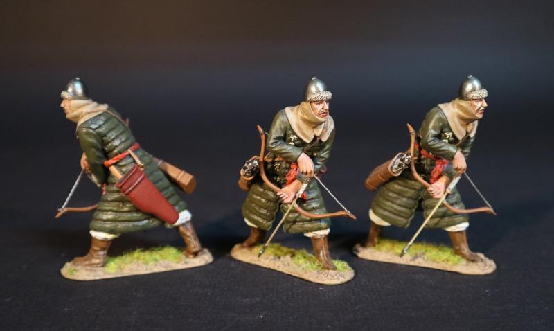 Three Korean Auxillary Archers Leaning Nocking Arrows (green armor), The Mongol Invasions of Japan, 1274 and 1281--three figures